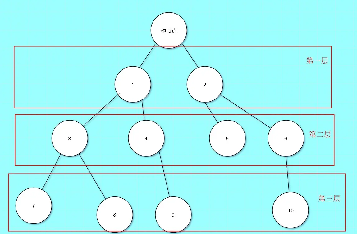 如图所示,这个树,根节点属于第0层,之后按照顺序分层。根节点有俩个子节点,1和2,1有俩个子节点3和4。以此类推,应该很好理解他们的子节点吧。同理父节点就是他们上边的节点,1和2的父节点就是根节点。