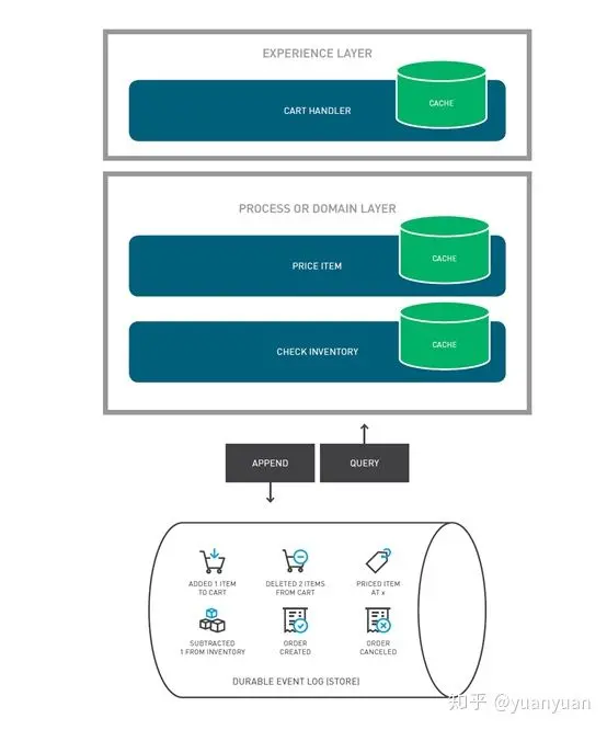 1.将所有的状态更改作为事件发送到永久事件日志。当需要查询数据时,通过计算事件日志中的所有更改来构建物化视图。