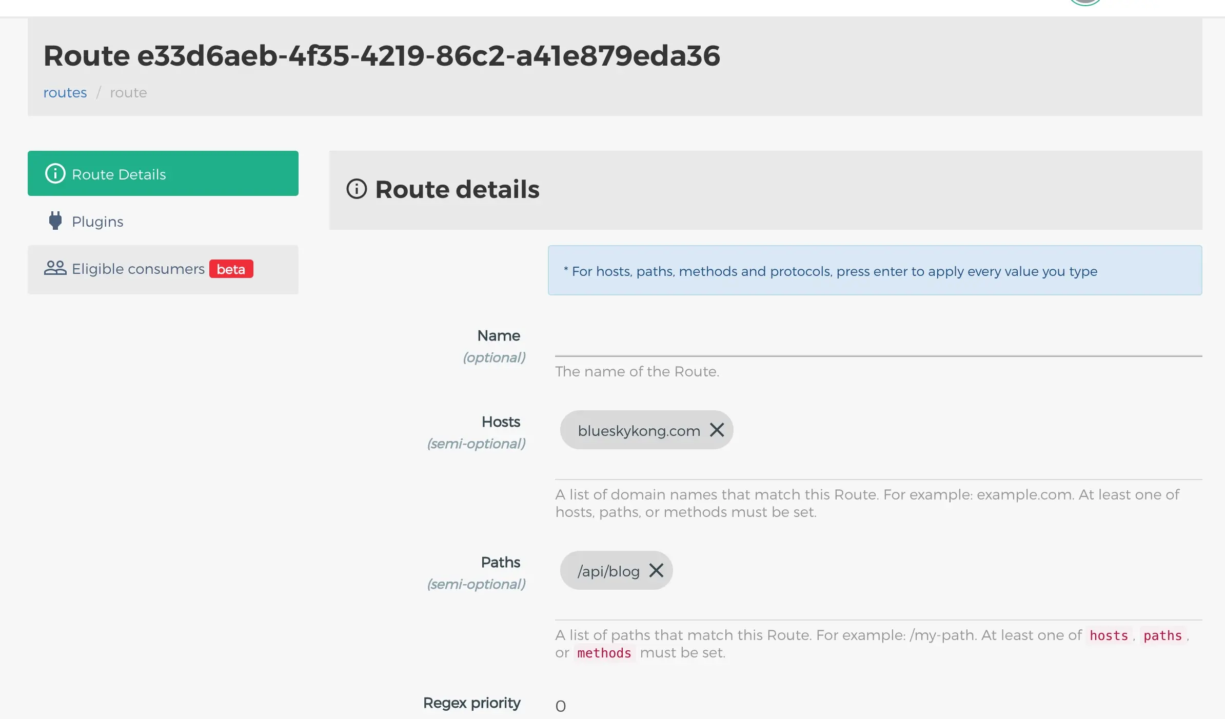 创建好服务之后,我们需要创建具体的 API 路由。路由是请求的转发规则,根据 Hostname 和 PATH,将请求转发。