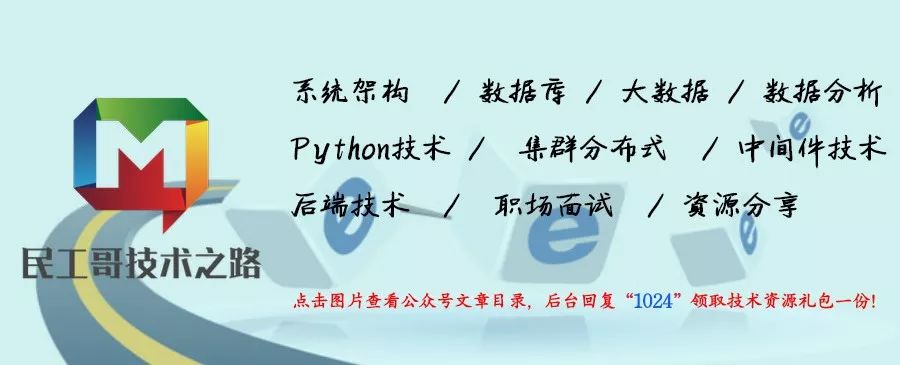 在 民工哥技术之路 微信公众号对话框回复关键字: 1024 可以获取一份最新整理的技术干货。