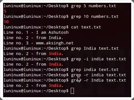 grep "<string>" <file-name>在给定的文件中搜寻指定的字符串。grep -i "<string>" <file-name>在搜寻时会忽略字符串的大小写,而grep -r "<string>" <file-name>则会在当前工作目录的文件中递归搜寻指定的字符串。