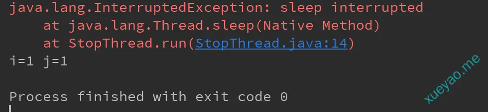 对Demo中的示例,stop()改成interrupt()后,最终输出为"i=1 j=1",数据一致。