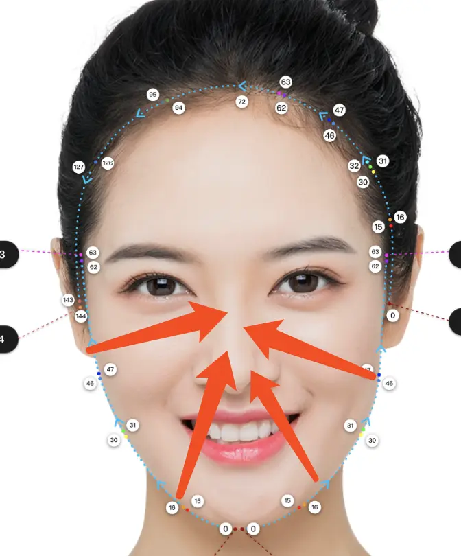 其实有了上面的拖动,要实现自动瘦脸就容易得多,我们对几个关键点进行模拟拖动即可。