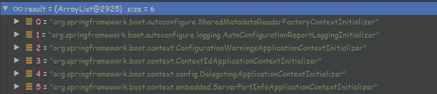 private List<ApplicationContextInitializer<?>> initializers; //如图1.2这个是拿6个Initializer