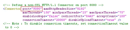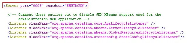 更改其中一个的设置打开 tomcat2/conf/server.xml 文件,修改里面所有的端口设置,将 8 改为 9 ,如下: