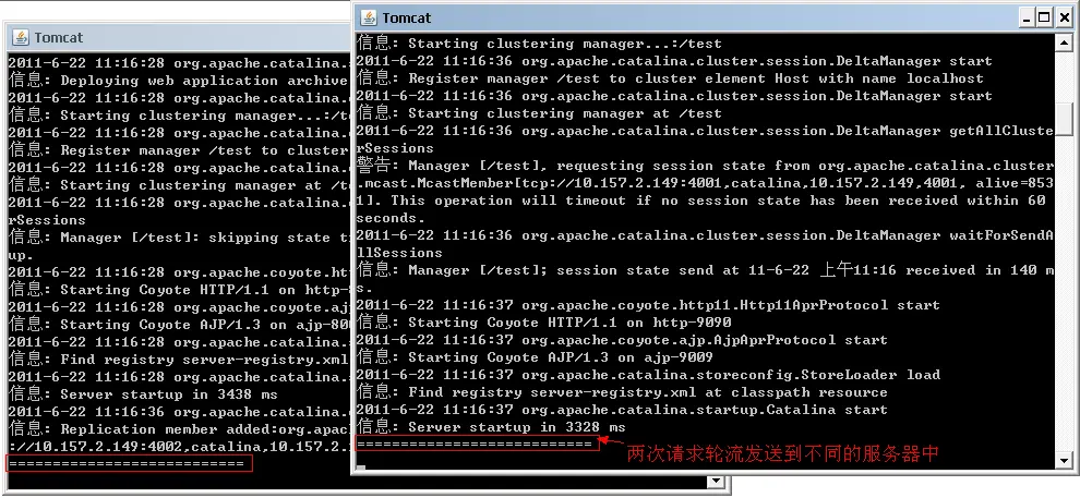 只配置负载均衡还不行,还要 session 复制,也就是说其中任何一个 tomcat 的添加的 session ,是要同步复制到其它 tomcat , 集群内的 tomcat 都有相同的 session: