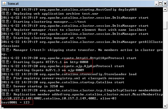 如上图所示, tomcat1 创建了一个新的 session , session 中有属性 test0001, 值为 123