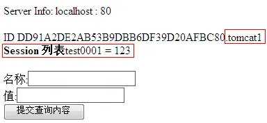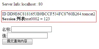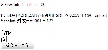 2) 访问 http://localhost/test/test.jsp ,输入名称: test0001 、值: 123 并点击“提交查询内容”按钮,显示效果如下: