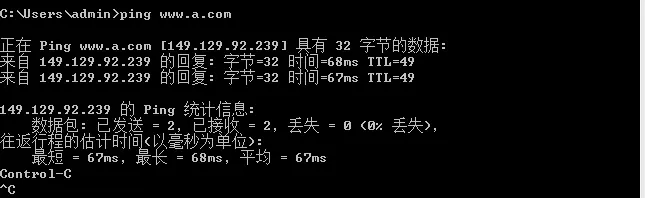 [root@izj6c1w3z30pendgik4p4vz ~]# ping www.a.com -c 2