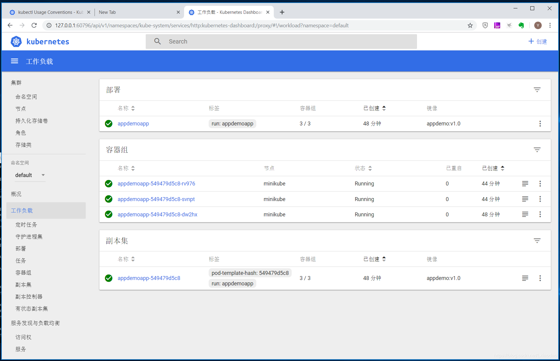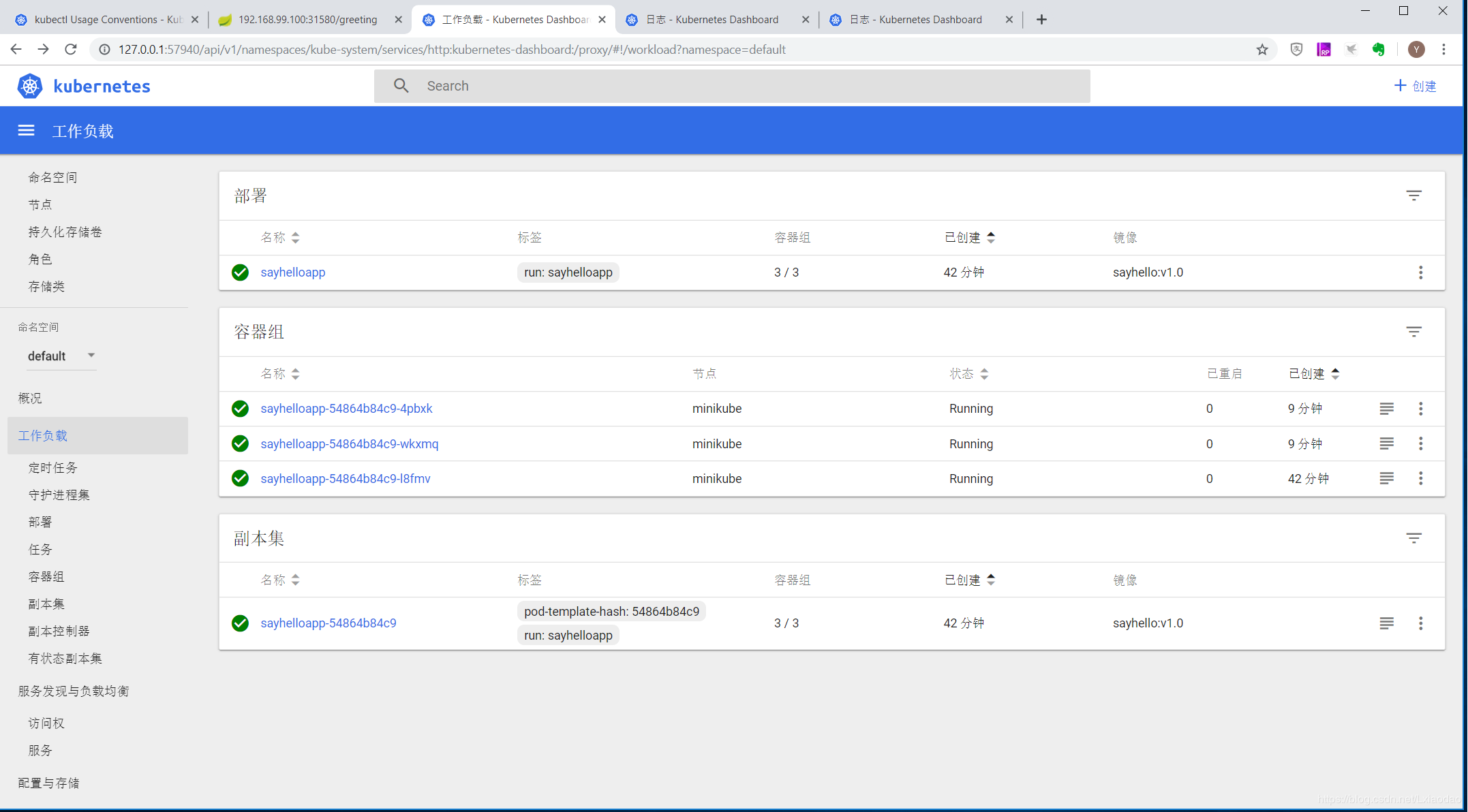 6.使用前面创建的镜像,创建和运行Container;并创建Deployment部署来管理这个Container