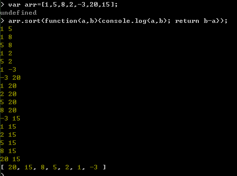 arr.sort(function(a,b){console.log(a,b); return b-a})