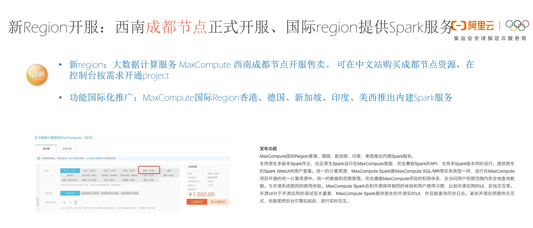 新Region开服:西南成都节点正式开服、国际Region提供Spark服务