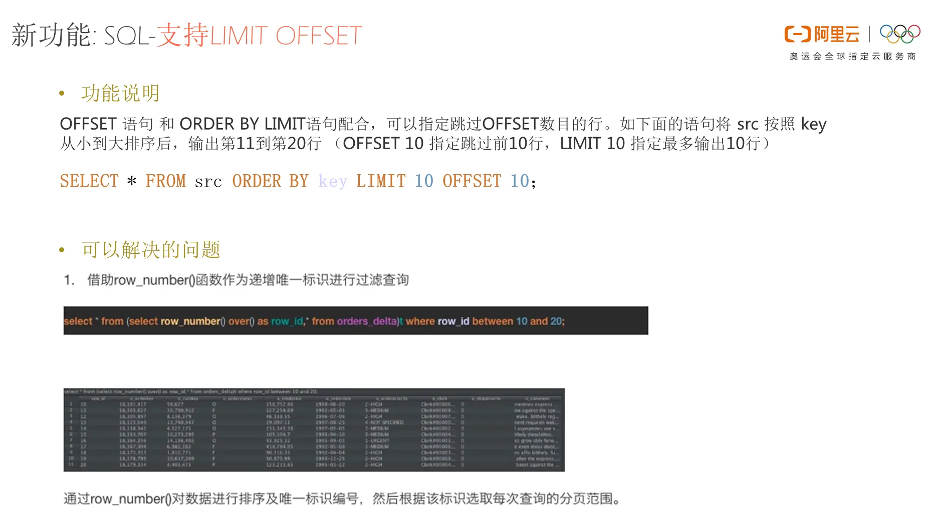 新功能: SQL-支持LIMIT OFFSET