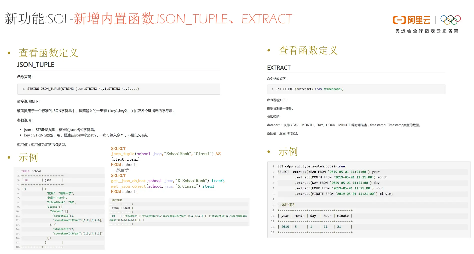 新功能:SQL-新增内置函数JSON_TUPLE、EXTRACT