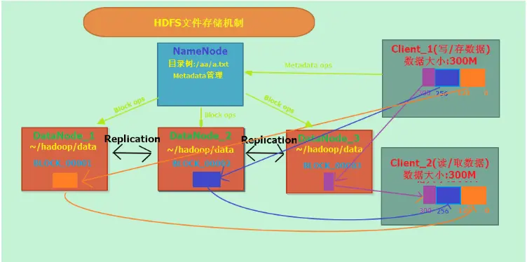 每一个文件块可以有多个副本,并存放在不同的DataNode上