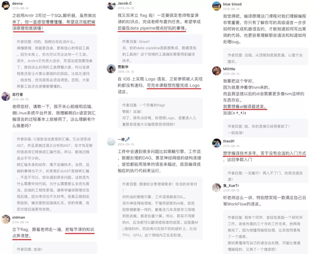 动手实践,成功实现一个编译器。 Flag 虽好,但最重要的还是跟上学习进度和节奏,课程有很多示例代码,每一步都是能运行的,而不是到最后才有一个可运行的东西。 鼓励大家多动手实践,去改示例代码,最终一步步手动实现一个编译器。
