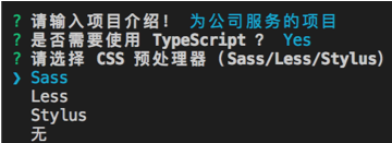 - 比如工程名是什么,描述一下你的工程,是否使用 TypeScript,是否使用 Sass/Less/Stylus 等