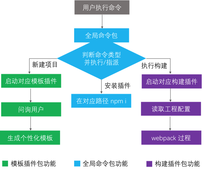 | 构建插件包 | 提供构建(webpack)能力 | 工程内 (目前主流脚手架都改用此方案) | 不同模板可使用同一构建包,也可不同 |