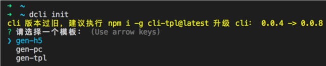 inquery库发起对话,罗列出已装模板,让用户选择,比如上图的gen-pcgen-h5gen-tpl
