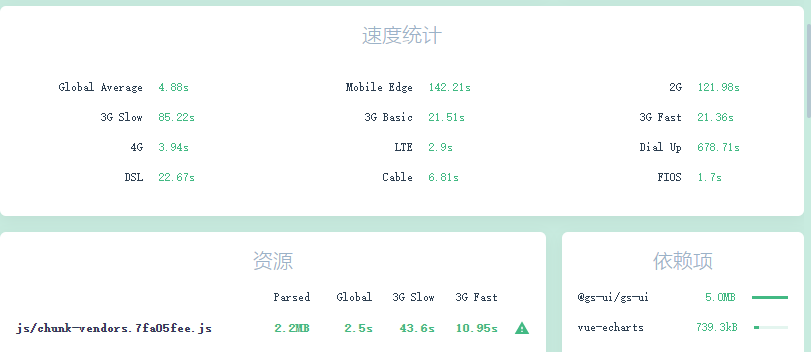 6. cli3提供了图形化界面和命令行两种方式,通过图形化界面,我们可以很直观的管理vue项目,启动编译测试项目,添加插件,更新安装依赖,更改部分配置等。值得一提的是,打包后也为我们分析了包的大小(webpack-bundle-analyzer),如果包较大的话,会有warning提示我们利用webpack的code-split去拆包,达到一个更好的性能。