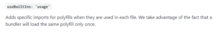 "useBuiltIns": "usage"