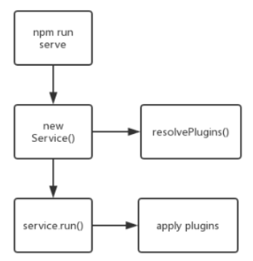接下来我们来看一下@vue/cli-service 内部是如何搭建整个插件系统的。就拿执行npm run serve启动本地开发服务来说,大概流程是这样的: