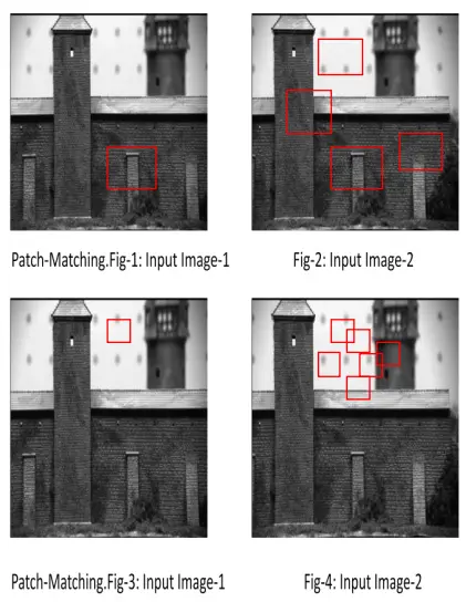 特征是要匹配的两个输入图像中的元素,它们是在图像块的内部。这些图像块是图像中的像素组。对输入图像进行Patch匹配。具体解释如下: 如下图所示,fig1和fig2给出了一个很好的patch匹配,因为fig2中有一个patch看起来和fig1中的patch非常相似。当我们考虑到fig3和fig4时,这里的patch并不匹配,因为fig4中有很多类似的patch,它们看起来与fig3中的patch很相似。由于像素强度很相近,所以无法进行精确的特征匹配,为了给图像对提供更好的特征匹配,采用角点匹配,进行定量测量。角点是很好的匹配特性。在视点变化时,角点特征是稳定的。此外,角点的邻域具有强度突变。利用角点检测算法对图像进行角点检测。角点检测算法有Harris角点检测算法、SIFT特征点检测算法((Scale Invariant Feature Transform),FAST算法角点检测算法,SURF特征点检测算法(Speeded-up robust feature)