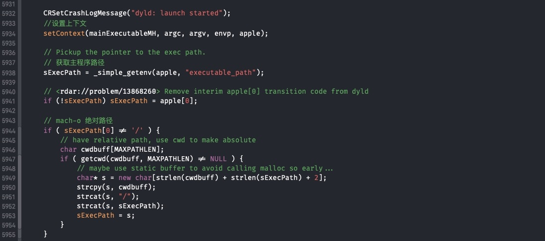 dyld::_main是dyld中的关键方法,代码也非常多,它的实现可以分为以下几步: (关键部分有注释)