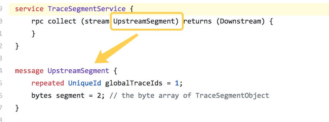 友情提示:Collector 接收到 TraceSegment 的数据,对应的类是 Protobuf 生成的。考虑到更加易读易懂,本文使用 TraceSegment 相关的原始类。
