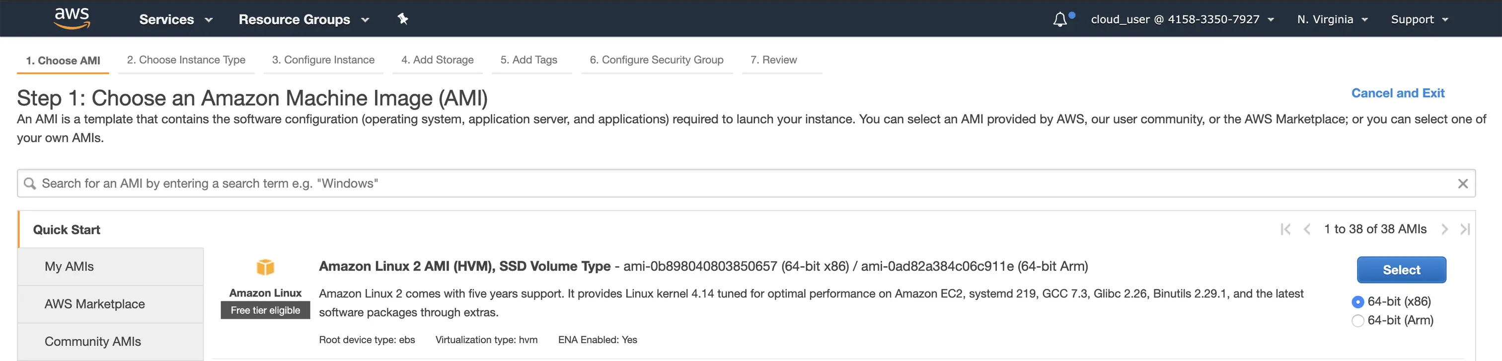选择 Amazon Linux 2 AMI 镜像