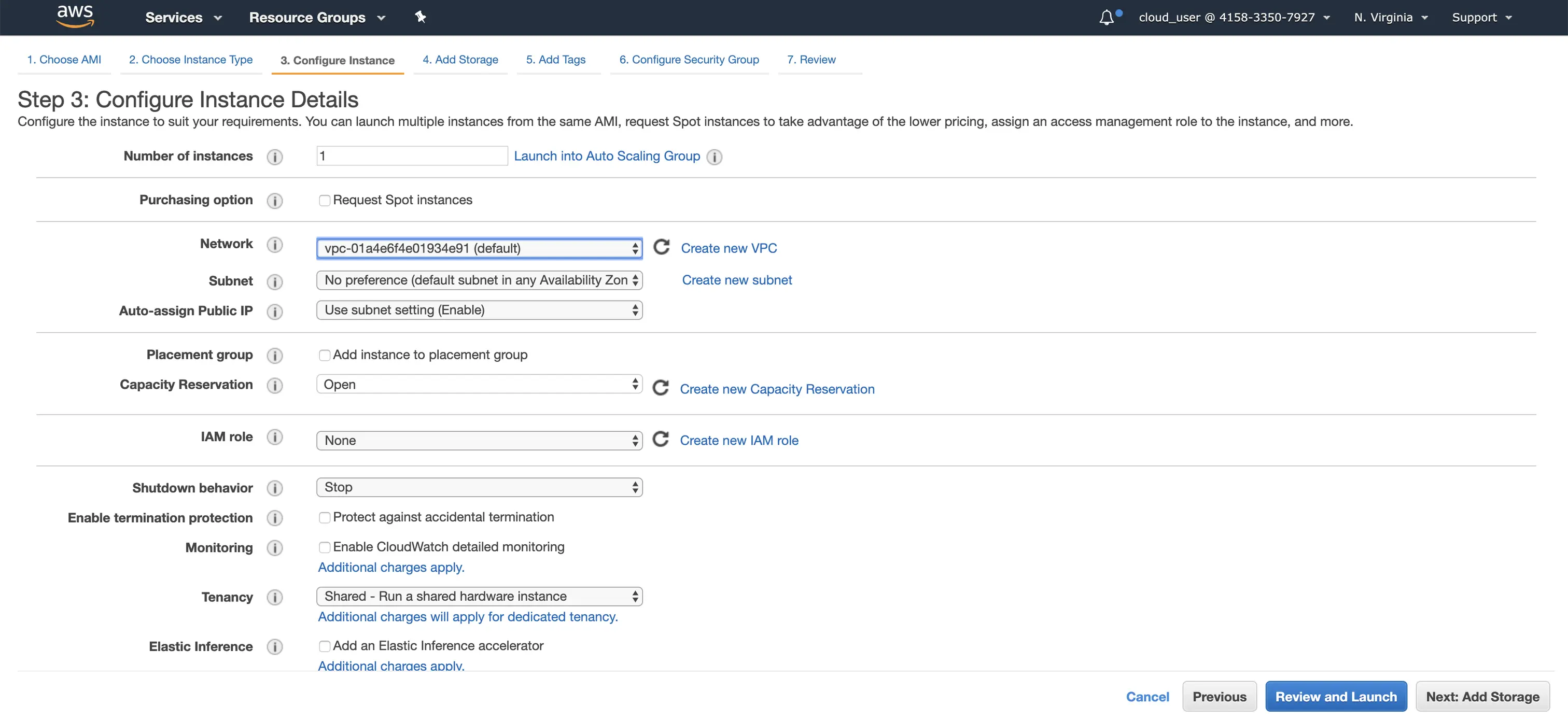 选择VPC/Subnet/IAM等并且启用自动分配公共IP(一切都保持默认)