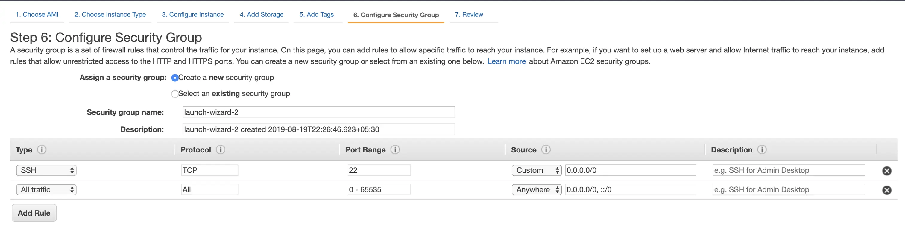 配置安全组以允许不同端口上的流量(本demo中启用所有流量)