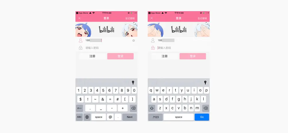在一些交互节点上加入彩蛋信息来唤起用户的同理心。例如B站的登录页面,用户在输入用户名时,画面中的形象是睁眼的,但是当用户输入密码时,画面中的形象架将眼睛蒙了起来。这种充满“拟人”的展现样式,不仅让产品更加生动,也让用户对产品隐私性的保护周全性深入人心。