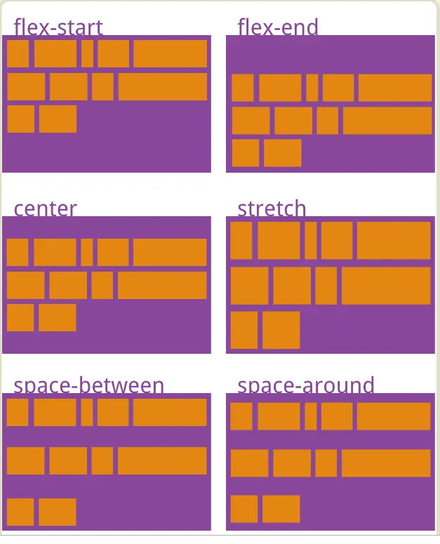 align-content: flex-start | flex-end | center | space-between | space-around | stretch