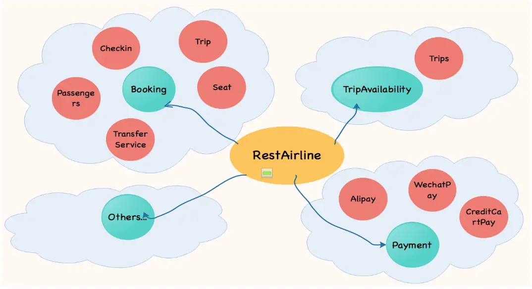 就上面的需求我们可以很容易的分析出若干个领域: Booking, Payment, Trip Avalability