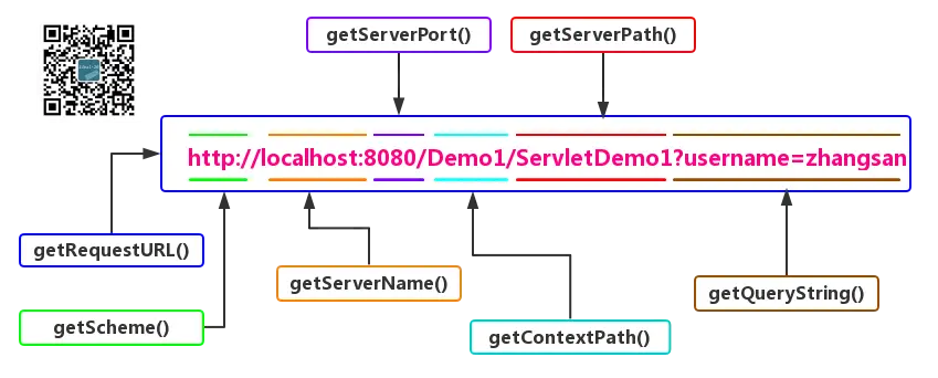 返回请求URL路径,例如:http://localhost/Demo1/ServletDemo1即返回除了参数