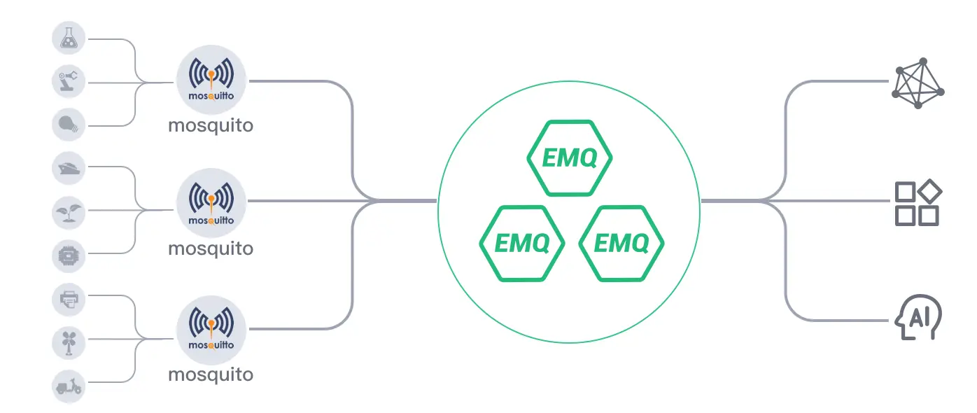 因此 Mosquitto 并不适合用来做规模化服务的 MQTT Broker,但由于其足够轻量精简,可以运行在任何低功率单片机包括嵌入式传感器、手机设备、嵌入式微处理器上,是物联网边缘消息接入较好的技术选型,结合其桥接功能可以实现消息的本地处理与云端透传。