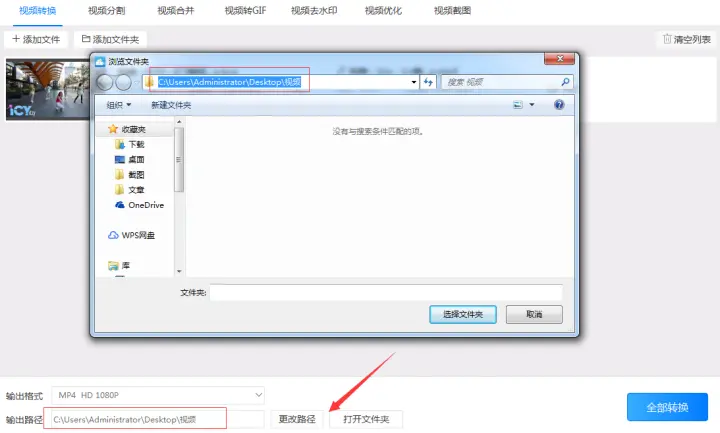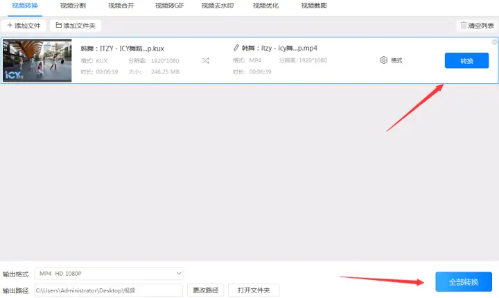 5、最后点击转换或全部转换按钮把kux格式转换成mp4格式。软件提示视频已经转换好了后只需要找到之前预设好的输出路径就可以找到转换好的mp4视频了。
