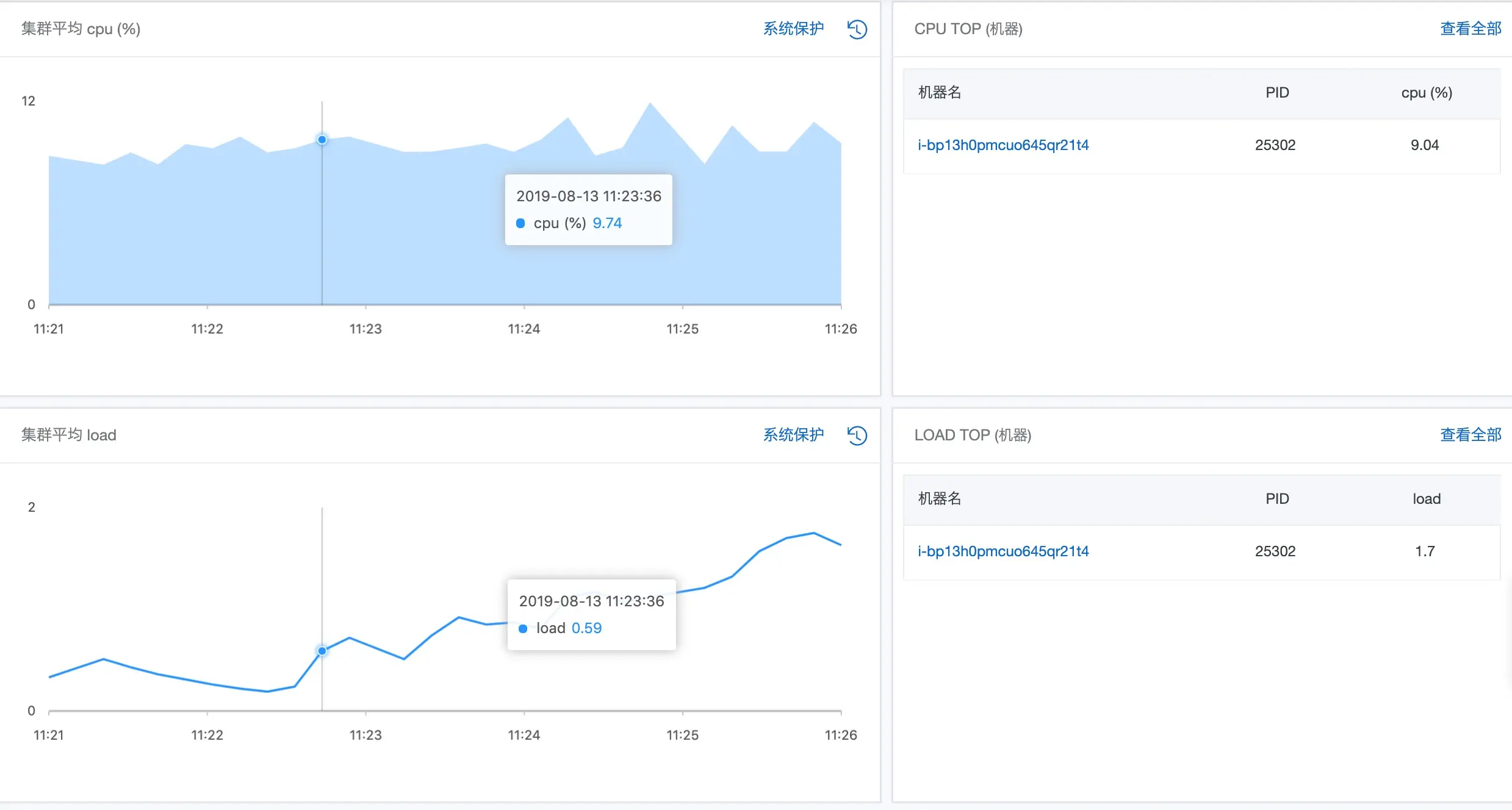同时可以查看集群、单机TOP的CPU、LOAD信息,并支持历史数据回放: