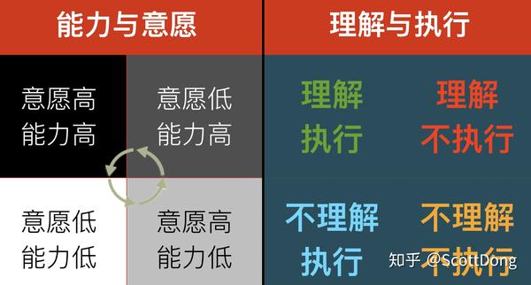 最怕的是理解不执行和不理解和不执行,最终反映在能力和意愿上,在一个团队的分布中,你就有了不同的象限,是能力好意愿度高的,还是能力高意愿度低的,只有意愿高能力高的人才能获得最大程度的授权和自由空间,反之不仅获得授权会缩水,甚至必须听从具体的拆解后的任务去做执行的角色,所以如何让自己无论能力高低,先让自己具备一个高意愿度都是一个明智的选项。