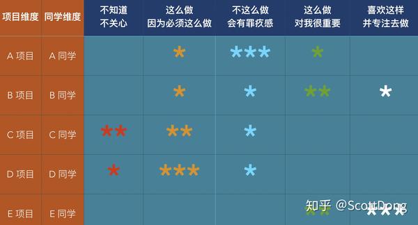 所以一个同学有可能做不同的项目会有不同的动机,即便做同一个项目的不同阶段也会有不同的动机,这是一个完全主观的事情,但是它很重要,因为不同的动机会带来三个结果:老板及周围同事通过你做这件事所看出的你的做事态度,这件事你做完达成的结果,以及你由此而获得的成就感或者成长,当然所有的团队都希望你无论喜欢与否,都至少是理解并执行这个任务: