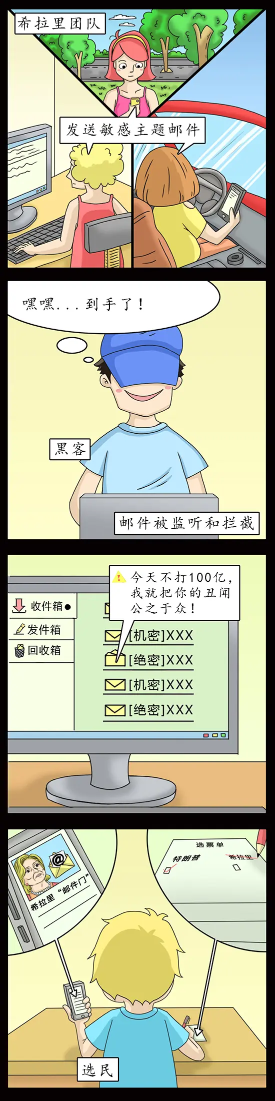希拉里在担任国务卿期间,使用私人电子邮箱和位于家中的私人服务器收发大量涉密邮件。2016年夏季,美国民主党全国委员会、筹款委员会、竞选团队被黑客组织入侵,近2万封邮件被维基解密披露。邮件显示,希拉里涉嫌抹黑竞争对手,以及可能涉嫌洗钱等财务问题。最终,希拉里因“邮件门”最终落败美国总统竞选。
