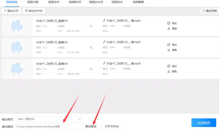 5、格式转换好后点击重叠在转换按钮上的打开按钮,或者直接在电脑中打开预设的文件夹路径就可以找到转换后mp4格式的视频了。