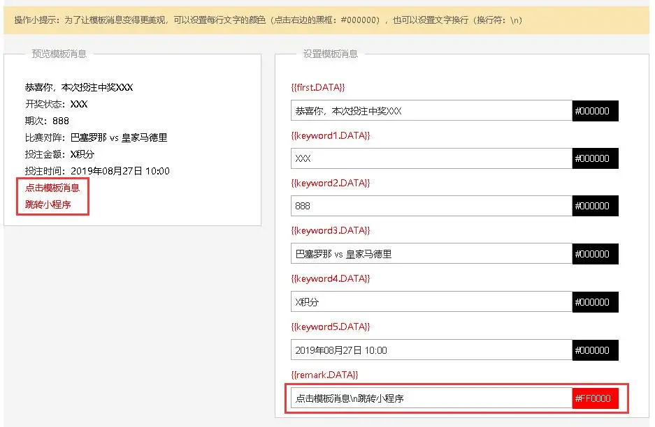 5、模板消息换行、修改颜色效果