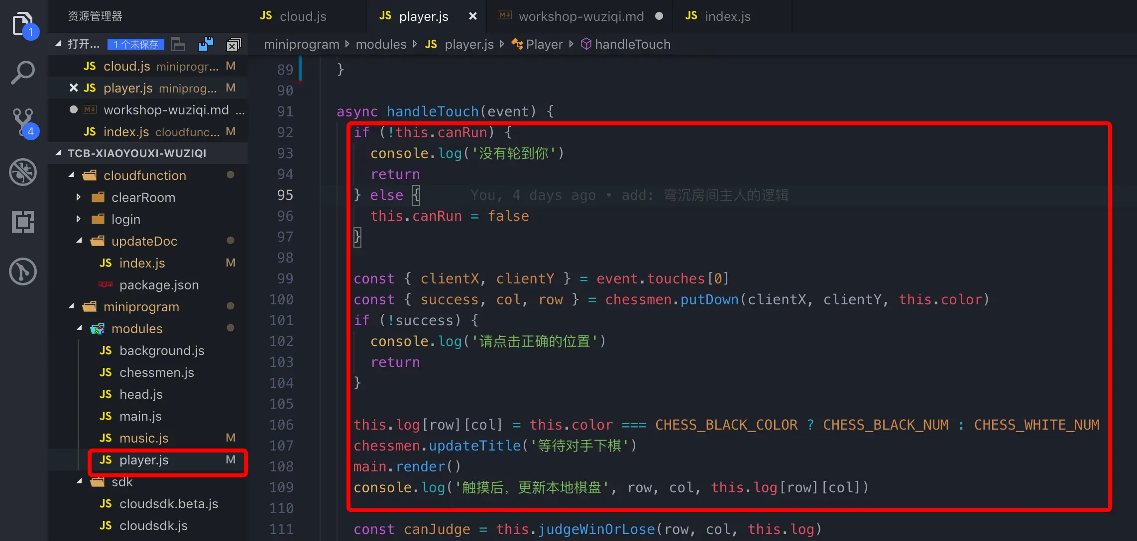 落子成功后,要在本地判断是否胜利。如果胜利,需要调用退出的逻辑。但无论是否胜利,都要将本地的最新状态更新到云端。