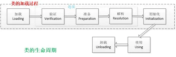 - Java类的加载是动态的,它并不会一次性将所有类全部加载后再运行,而是保证程序运行的基础类(像是基类)完全加载到jvm中,至于其他类,则在需要的时候才加载。这当然就是为了节省内存开销。