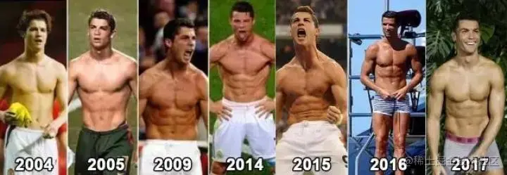 而对 33 岁的 C 罗来说,岁月仿佛在他的身体上没留下任何痕迹