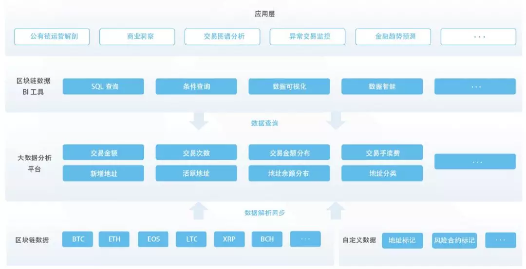 那么,BDS究竟是什么?郭理靖介绍说,从产品角度讲,BDS确实是一个更类似于大数据分析的产品。但在底层数据抽取上又和传统的大数据平台有很大不同,区块链的数据是一个个区块,就像一本本没有电子化的账本,通常要统计某一个用户过去一年所有的交易,必须遍历所有的区块才行,但是BDS里只需要通过一条SQL语句就可以找出来,因为通过BDS,已经把这些离散的数据都统一堆放到了一个数据仓库里,以方便用户查询。