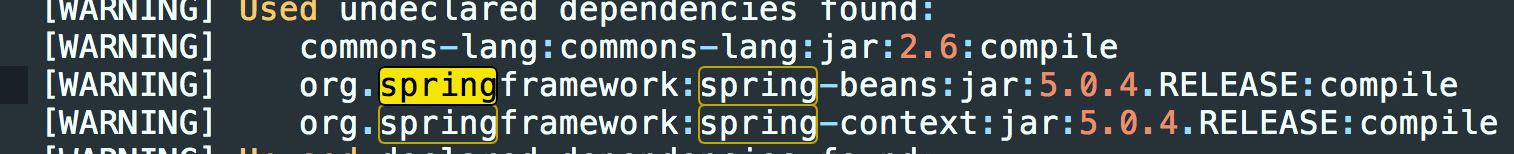 在执行mvn dependency:analyze后看到使用的Spring版本也变成了5.0.4.RELEASE。