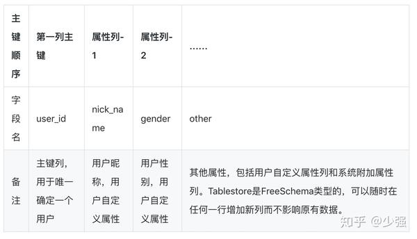 如果使用NoSQL数据库Tablestore,那么用户详情表设计结构如下: